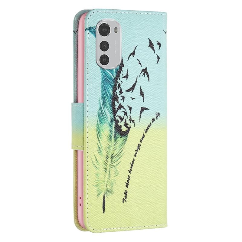 Θήκη τηλεφώνου δερμάτινη με έγχρωμο σχέδιο για Motorola Moto E32 4G (Φτερό)