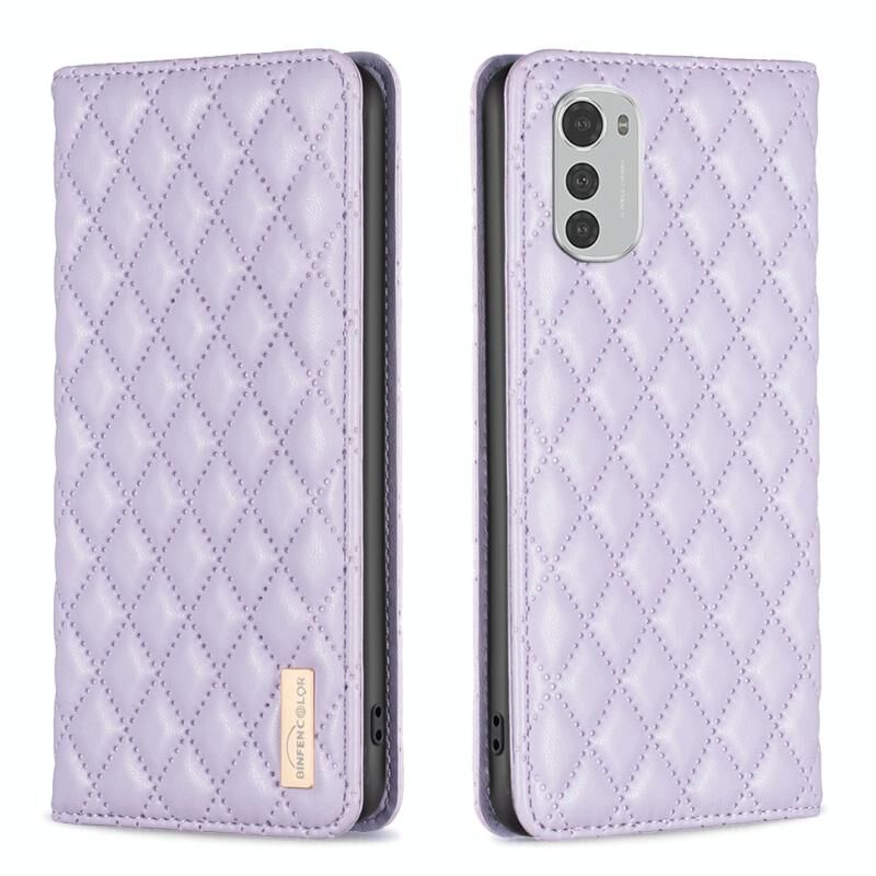 Θήκη κινητού τηλεφώνου τύπου flip από δέρμα με μαγνητικό κλείσιμο και διαμαντένιο σχέδιο πλέγματος για Motorola Moto E32 4G (Μαύρο)