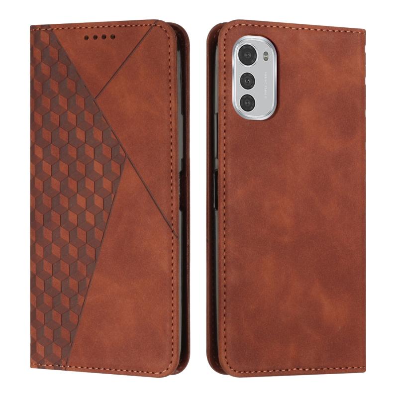 Θήκη τηλεφώνου με μαγνητικό κλείσιμο για Motorola Moto E32 4G/E32s, με ανάγλυφο σχέδιο διαμαντιού και υφή δέρματος (Καφέ)