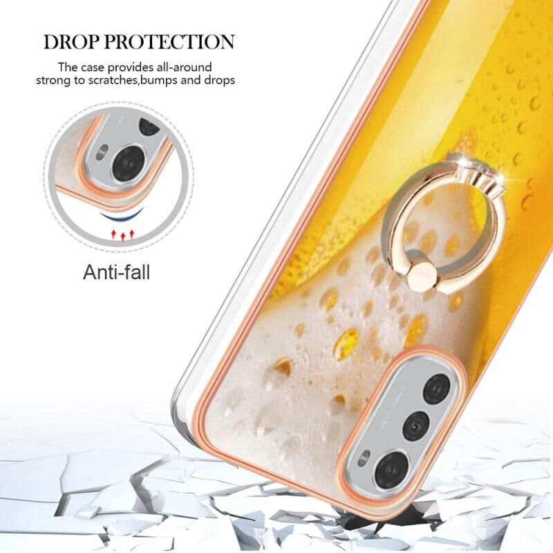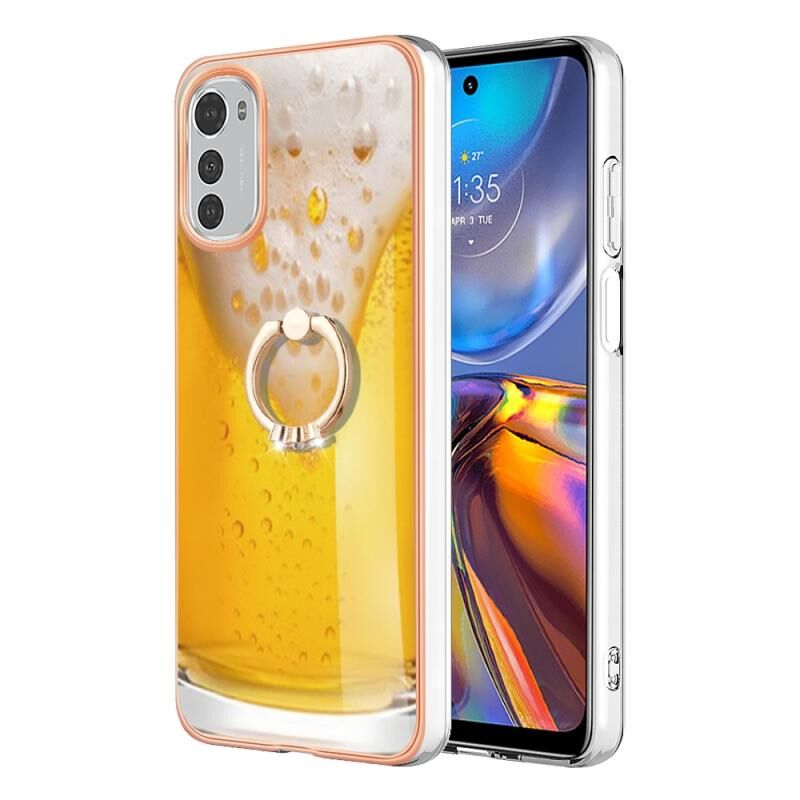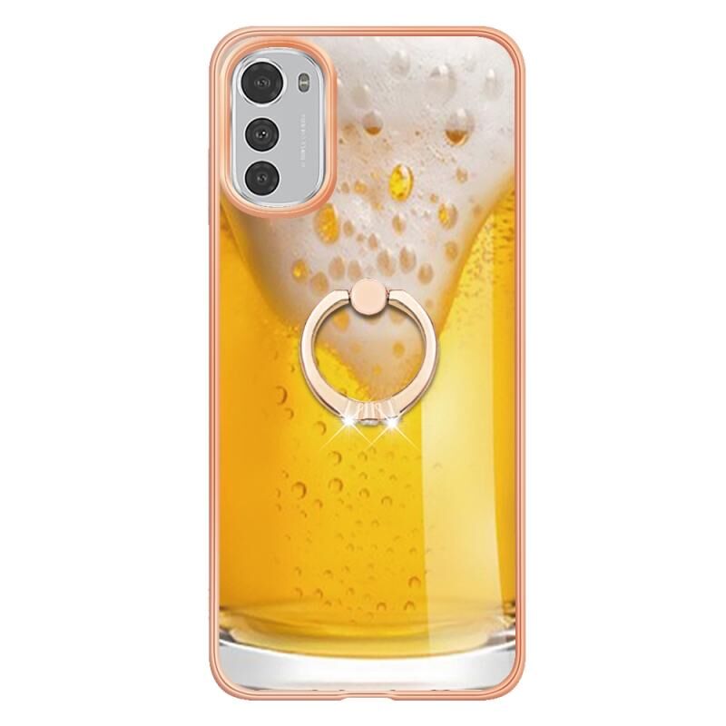 Θήκη τηλεφώνου με δακτύλιο στήριξης και διπλή όψη IMD με ηλεκτρολυτική επικάλυψη για Motorola Moto E32 4G / E32s (Μπύρα βαρελίσια)