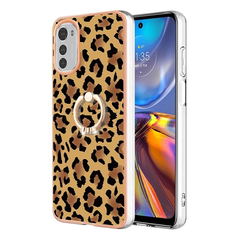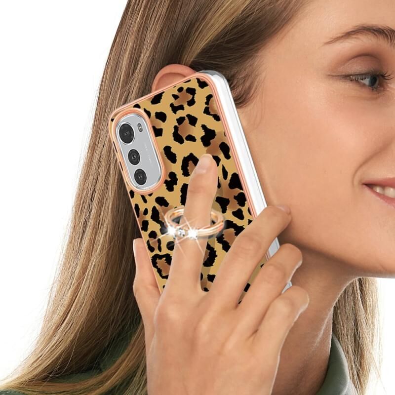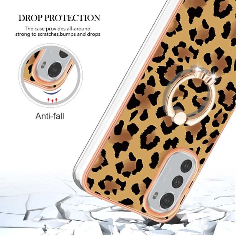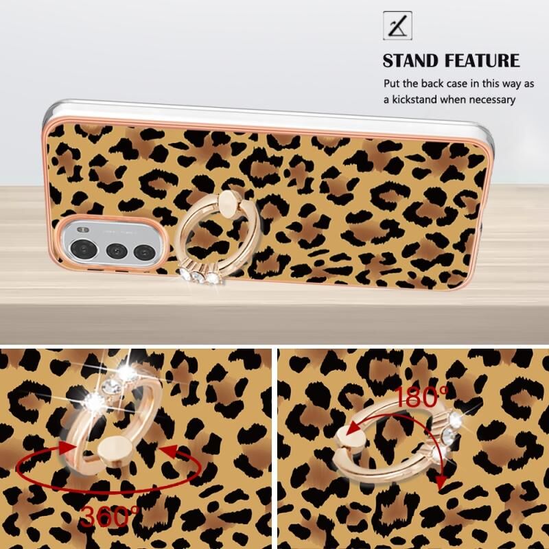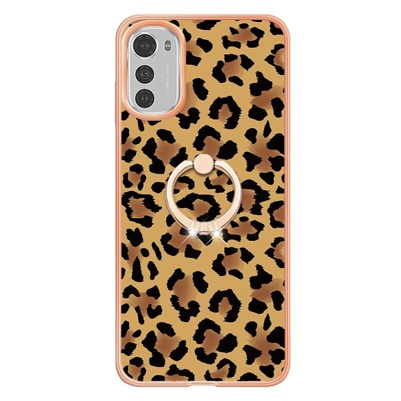 Θήκη τηλεφώνου με δακτύλιο στήριξης και σχέδιο λεοπάρδαλης, με ηλεκτρολυτική επιμετάλλωση και διπλής όψης IMD για Motorola Moto E32 4G / E32s.