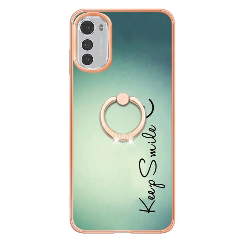 For Motorola Moto E32 4G / E32s Electroplating Dual-side IMD Phone Case with Ring Holder(Smile)