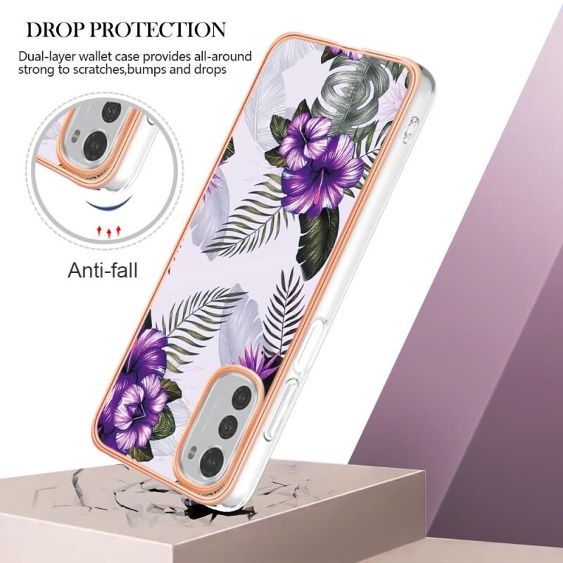 Θήκη τηλεφώνου για Motorola Moto E32 4G / E32S, Επιμετάλλωση IMD TPU (Μωβ Λουλούδι)