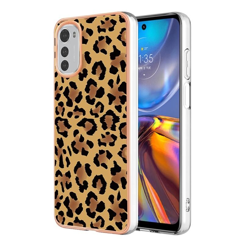 Θήκη τηλεφώνου για Motorola Moto E32 4G / E32S με ηλεκτρολυτική επιμετάλλωση, σχέδιο μάρμαρου, διπλής όψης IMD (εκτύπωση εντός καλουπιού) (εκτύπωση λεοπάρδαλης)