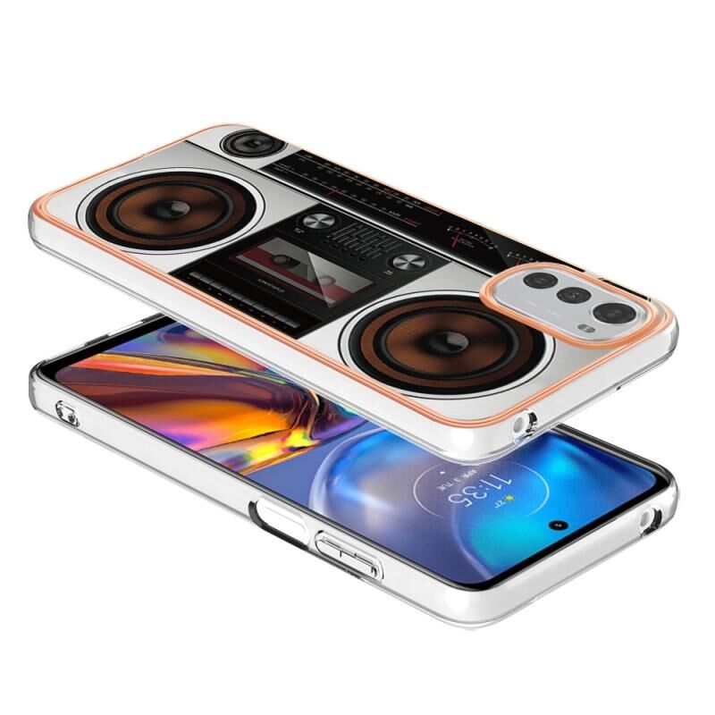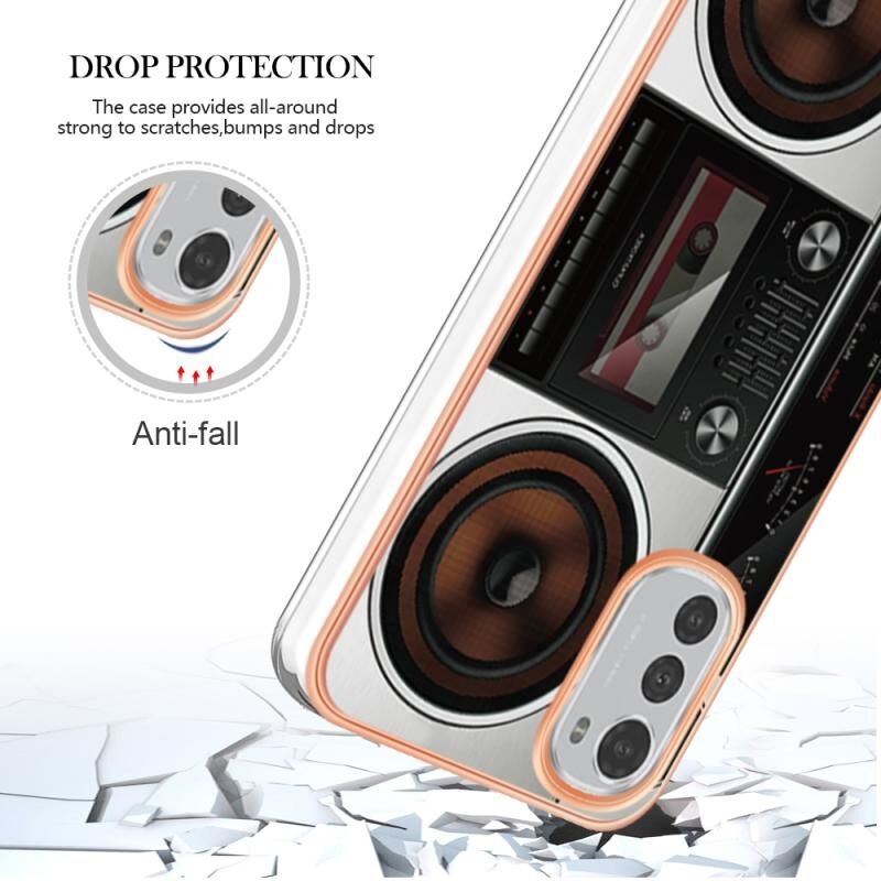 Θήκη τηλεφώνου για Motorola Moto E32 4G / E32S με ηλεκτρολυτική επίστρωση, σχέδιο μάρμαρου, διπλής όψης IMD (Retro Radio)