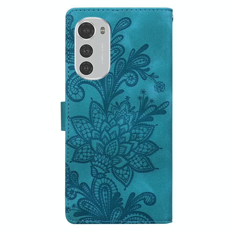 Θήκη τηλεφώνου για Motorola Moto E32 4G / E32S με δαντέλα, λουλουδάτο ανάγλυφο, μαγνητικό κούμπωμα και λουρί καρπού (Πράσινο)