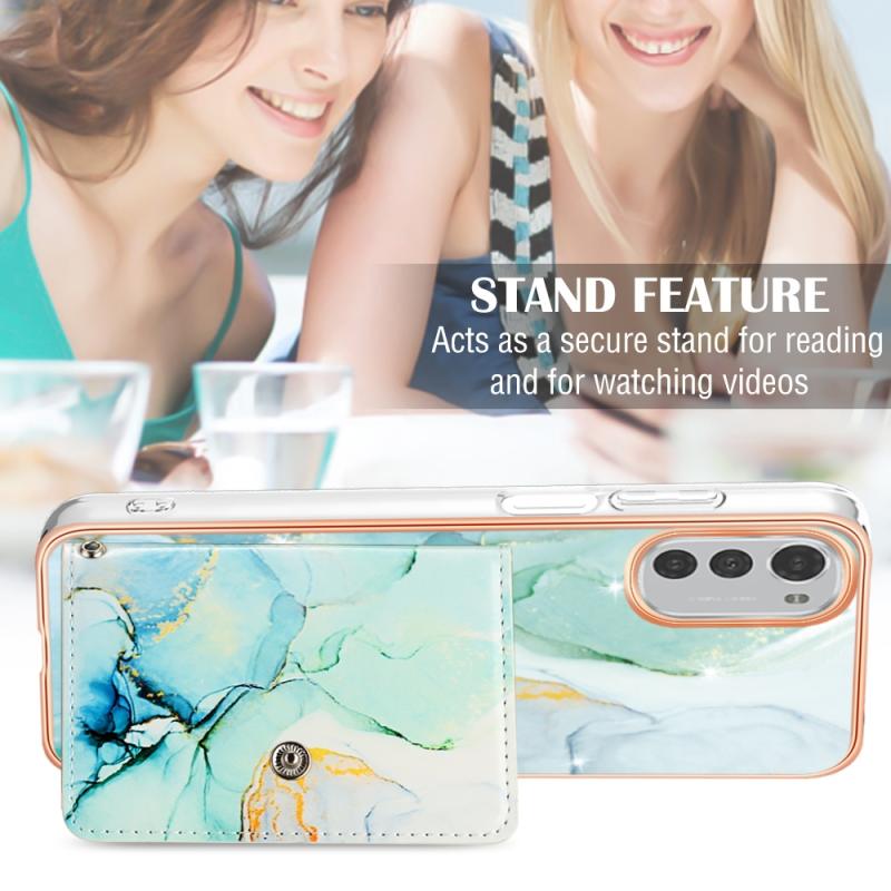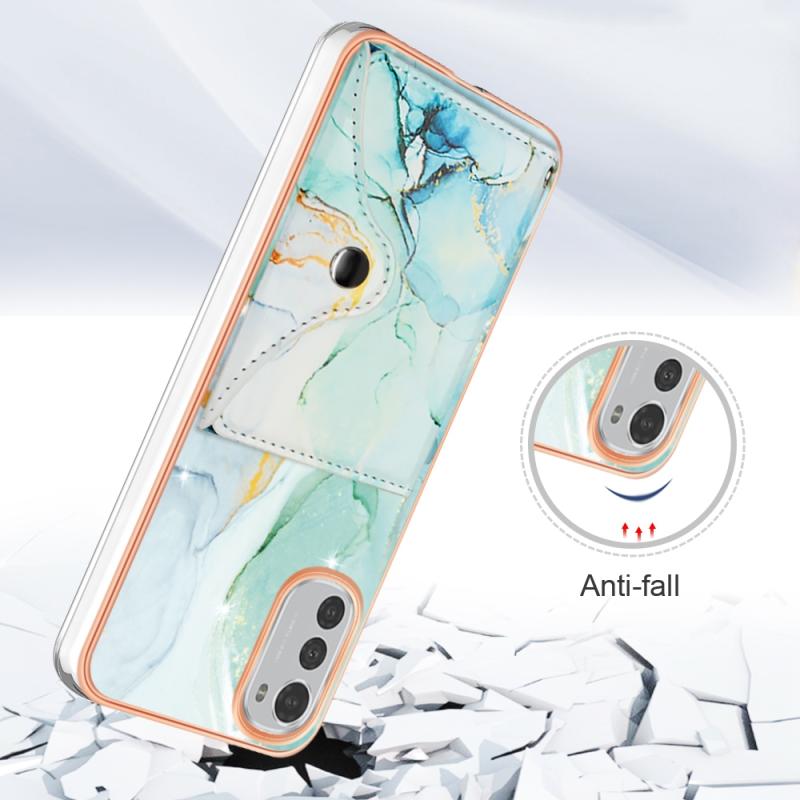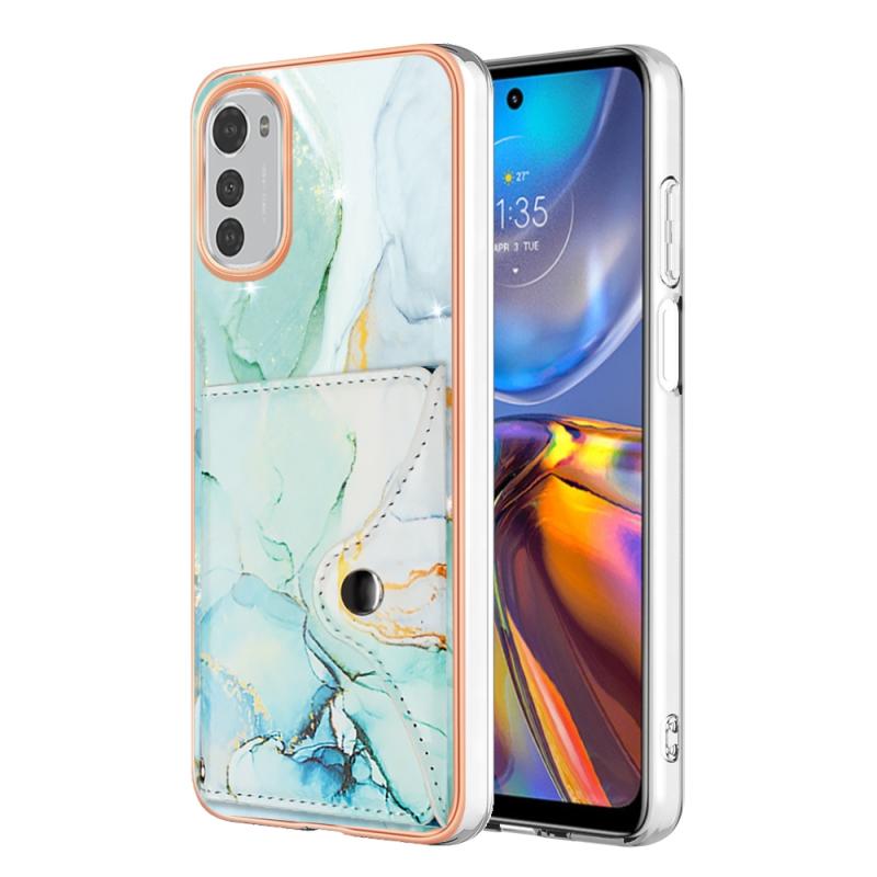For Motorola Moto E32 4G / E32S Marble Pattern IMD Card Slot Phone Case(Green)