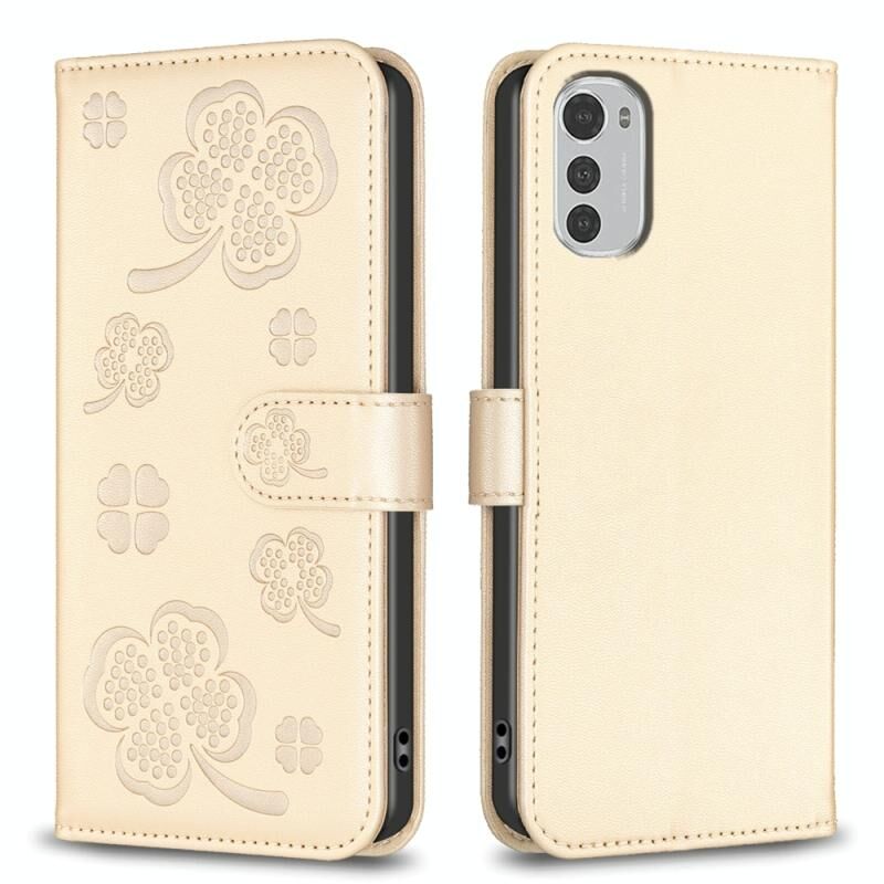 For Motorola Moto E32 4G Four-leaf Embossed Leather Phone Case(Gold)