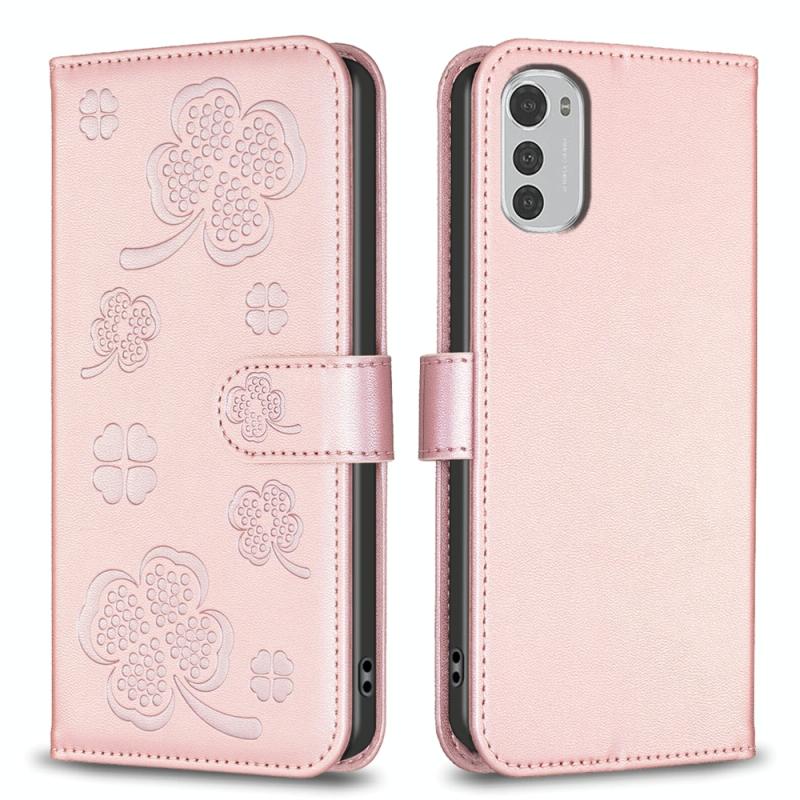 For Motorola Moto E32 4G Four-leaf Embossed Leather Phone Case(Pink)