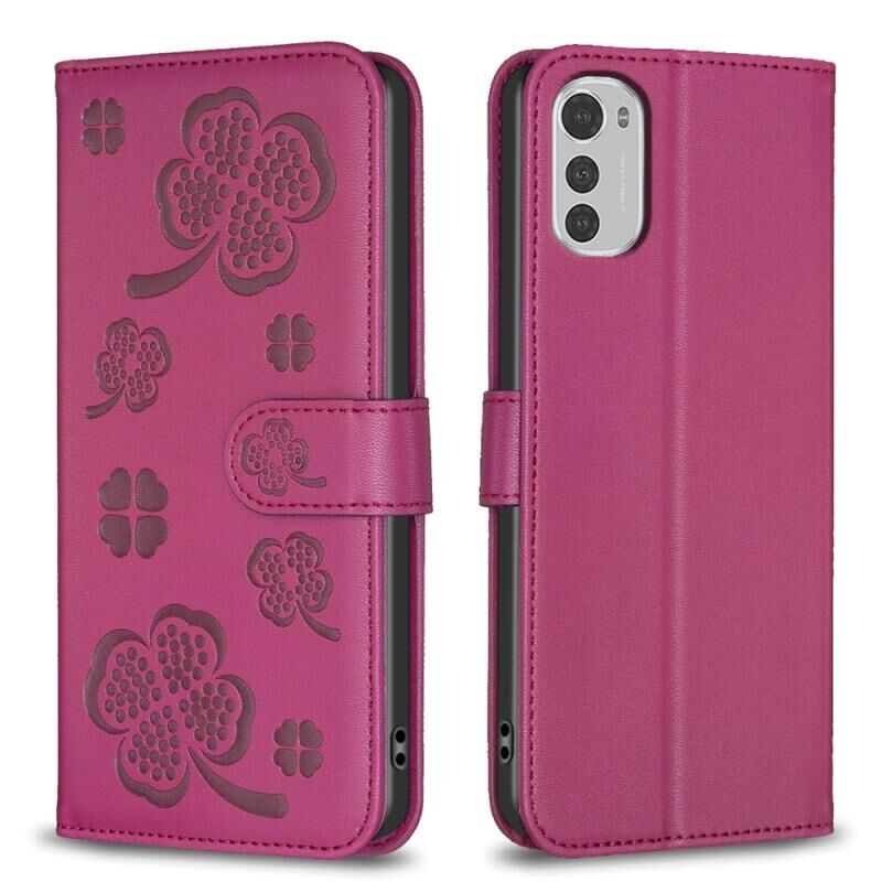 Για Motorola Moto E32 4G τετράφυλλο ανάγλυφη δερμάτινη θήκη τηλεφώνου (Rose Red)