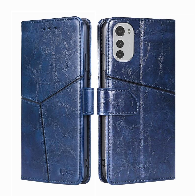 Για Motorola Moto E32 4G γεωμετρική ραφή οριζόντια Flip δερμάτινη θήκη τηλεφώνου (μπλε)