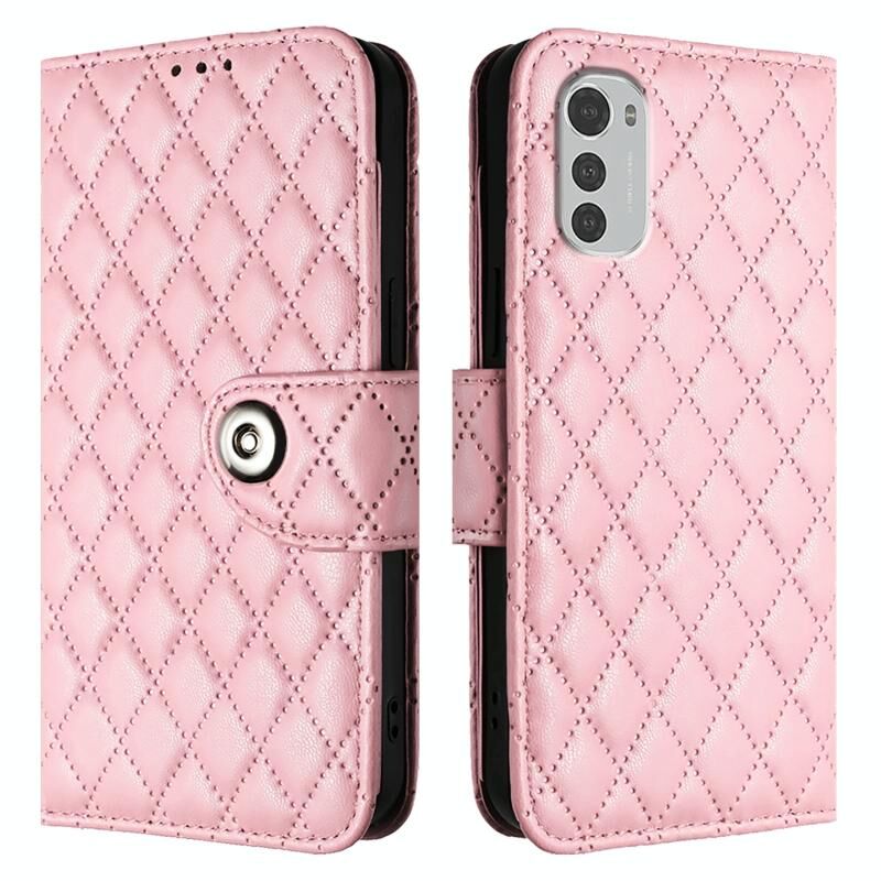 Για Motorola Moto E32 4G Global Rhombic Texture Flip δερμάτινη θήκη τηλεφώνου με κορδόνι (ροζ)