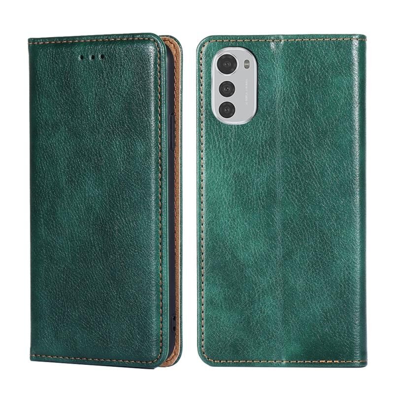 Για Motorola Moto E32 4G γυαλιστερό λάδι στερεό χρώμα μαγνητική δερμάτινη θήκη τηλεφώνου (πράσινο)