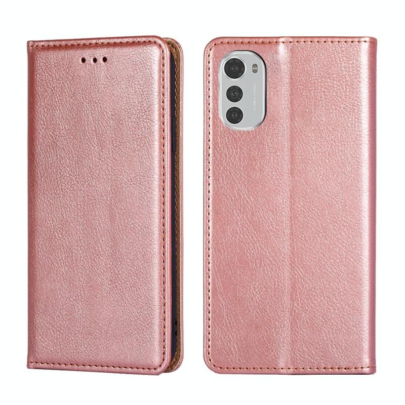 Για Motorola Moto E32 4G γυαλιστερό λάδι στερεό χρώμα μαγνητική δερμάτινη θήκη τηλεφώνου (Ροζ χρυσός)