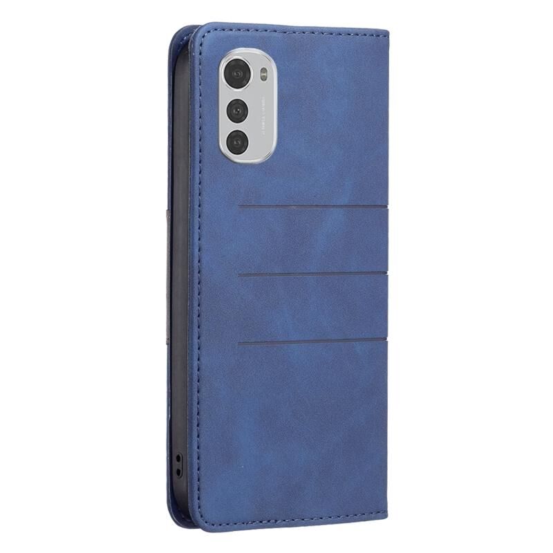 Για Motorola Moto E32 4G Μαγνητική θήκη τηλεφώνου με δερμάτινη επένδυση (μπλε)