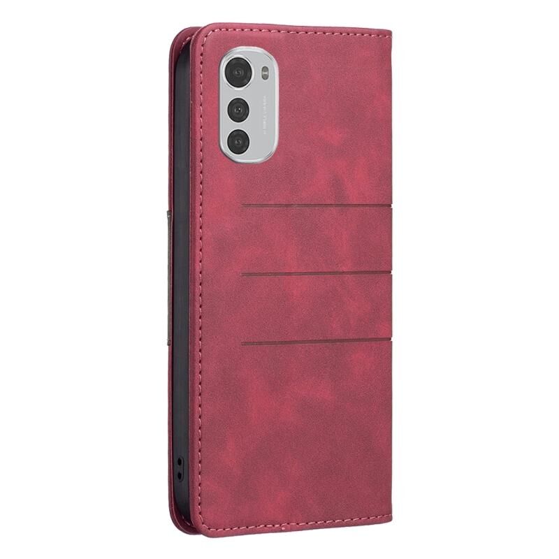 Για Motorola Moto E32 4G Μαγνητική θήκη τηλεφώνου με δερμάτινη επένδυση (κόκκινο)