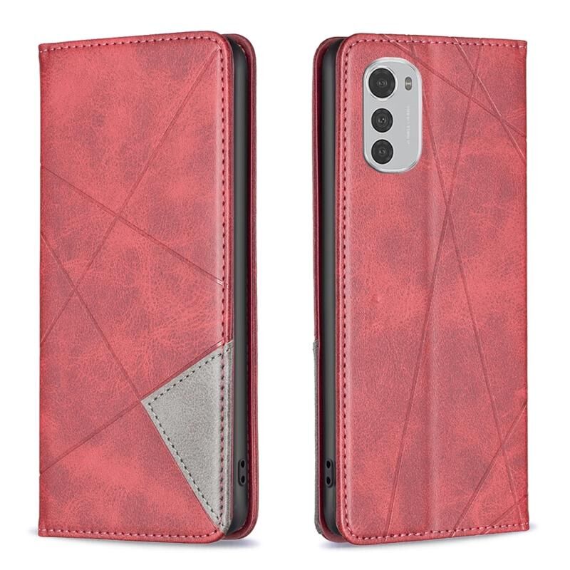 Για Motorola Moto E32 4G / Moto E32s Prismatic Αόρατη μαγνητική δερμάτινη θήκη τηλεφώνου (κόκκινο))