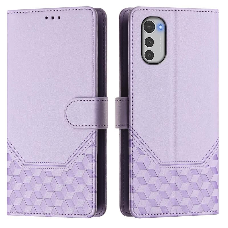 Για Motorola Moto E32 4G Oversea Honeycomb ανάγλυφη RFID δερμάτινη θήκη τηλεφώνου (ανοιχτό μωβ)