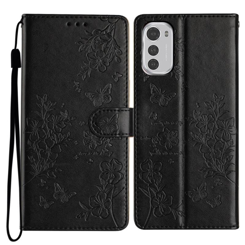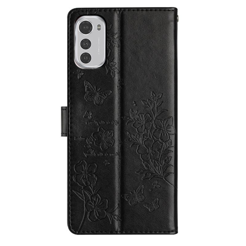 Θήκη τηλεφώνου δερμάτινη για Motorola Moto E32 με σχέδια πεταλούδες και λουλούδια (Χρυσό)