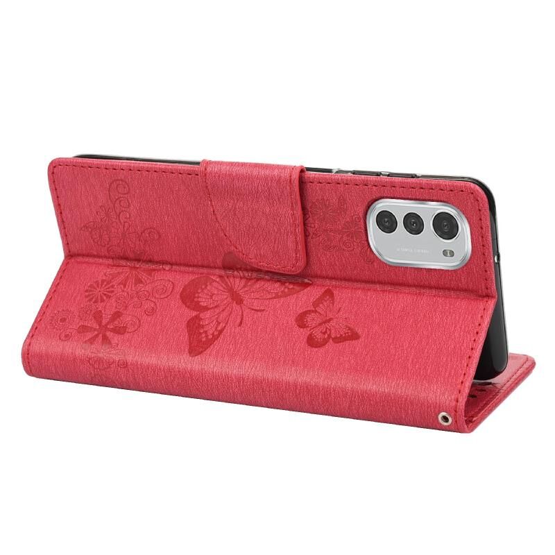 Θήκη τηλεφώνου δερμάτινη, οριζόντια, με ανάγλυφο σχέδιο πεταλούδων για Motorola Moto E32 (Καφέ)