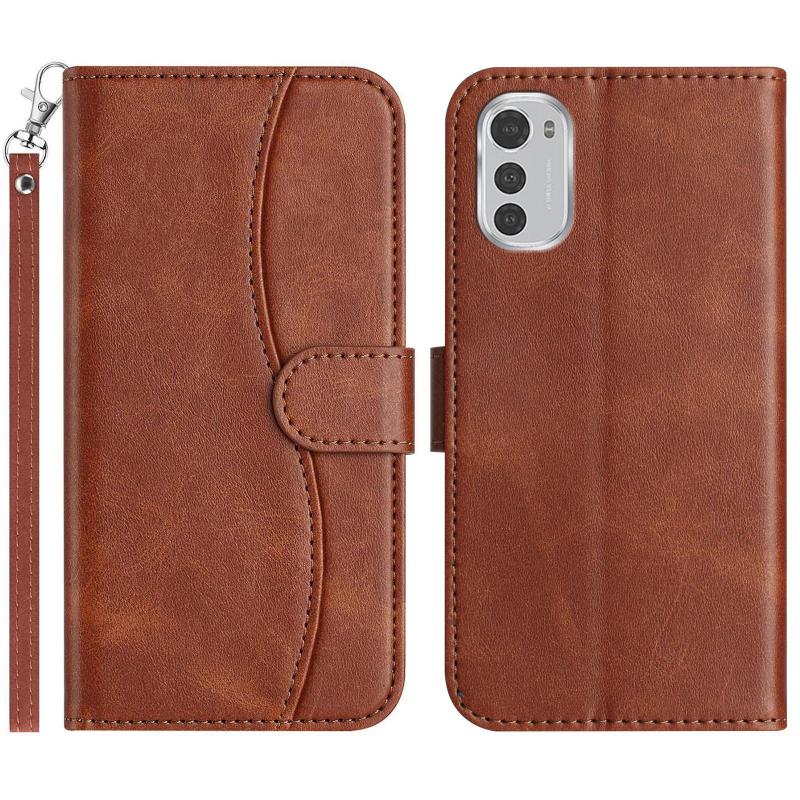 For Motorola Moto E32 Dual-Folded S-shape Leather Phone Case(Coffee)