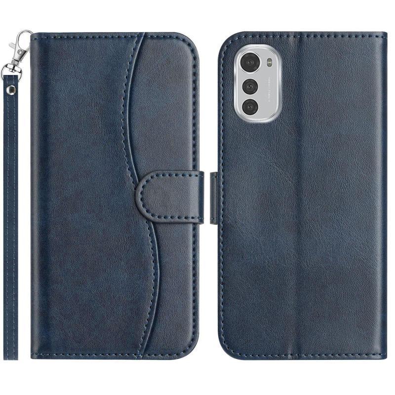 For Motorola Moto E32 Dual-Folded S-shape Leather Phone Case(Navy Blue)