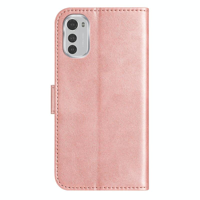 For Motorola Moto E32 Dual-Folded S-shape Leather Phone Case(Rose Gold)