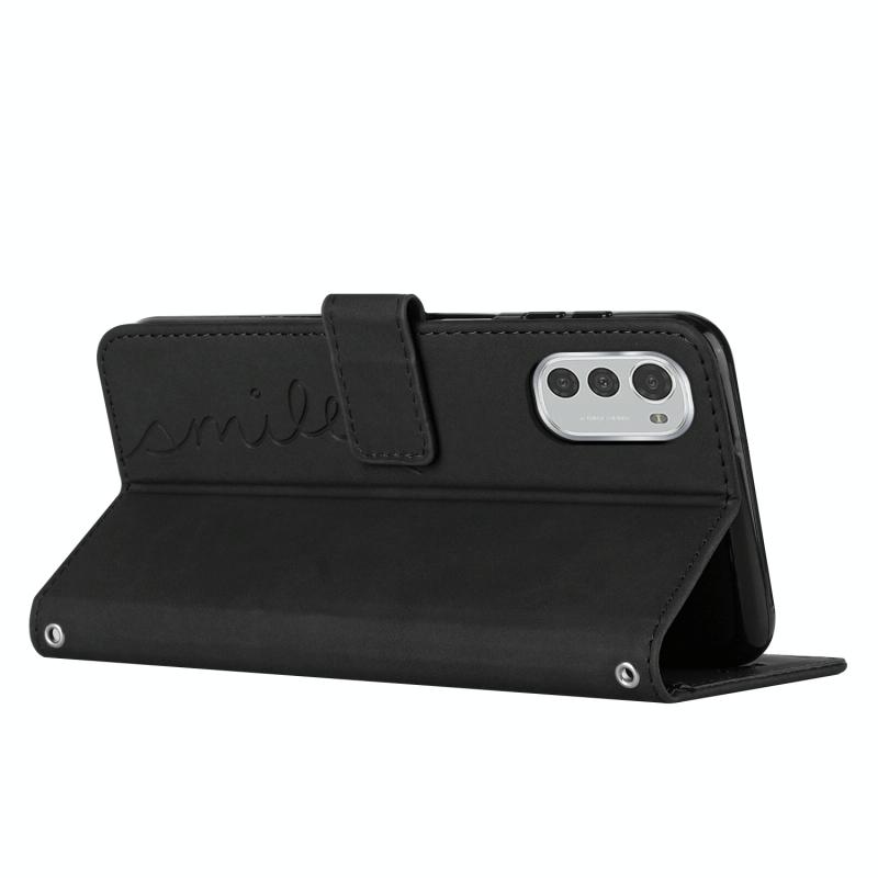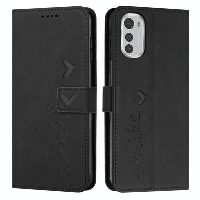 Θήκη τηλεφώνου από δέρμα με υφή δέρματος και σχέδιο καρδιάς για Motorola Moto E32/E32s (Μαύρο)