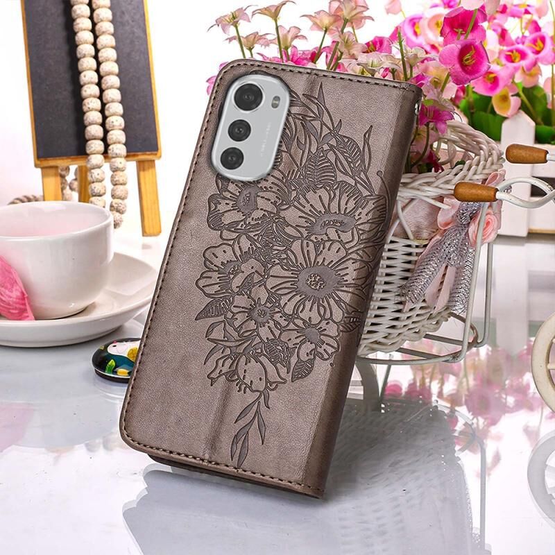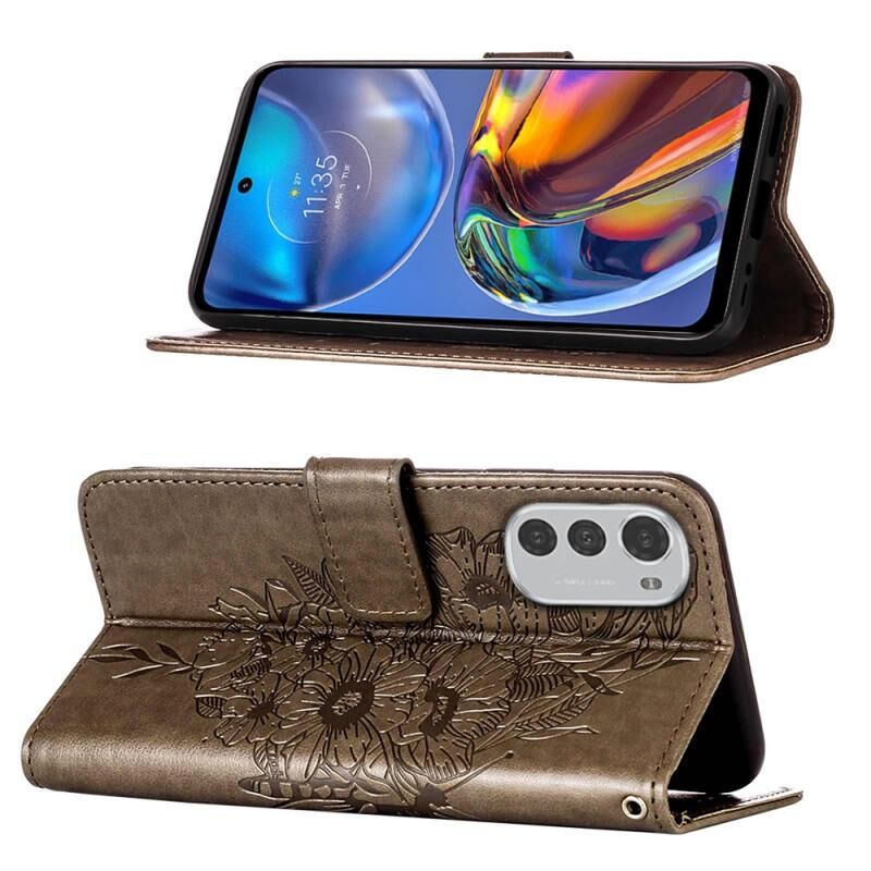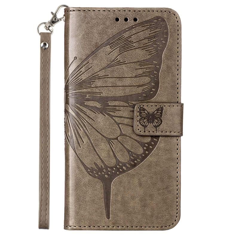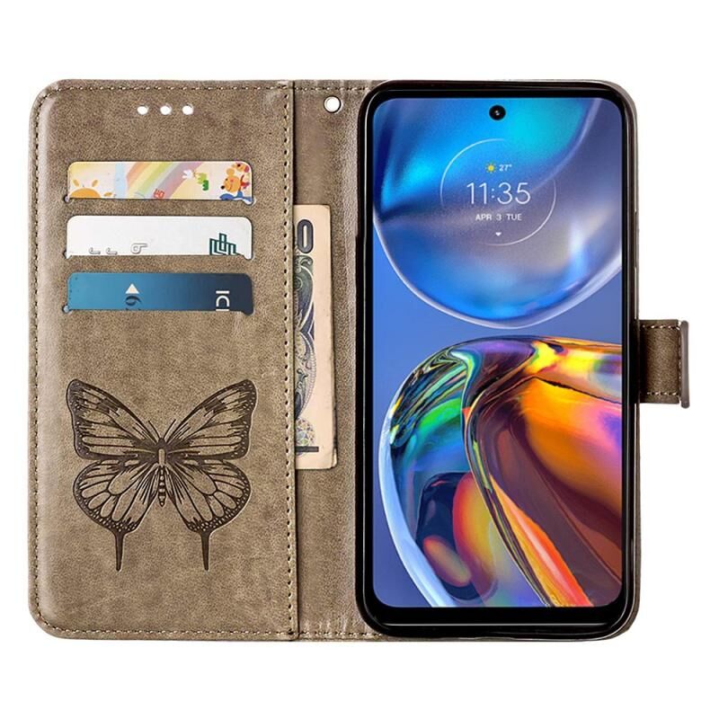 Θήκη κινητού τηλεφώνου δερμάτινη με ανάγλυφο σχέδιο πεταλούδας για Motorola Moto E32 (Γκρι)