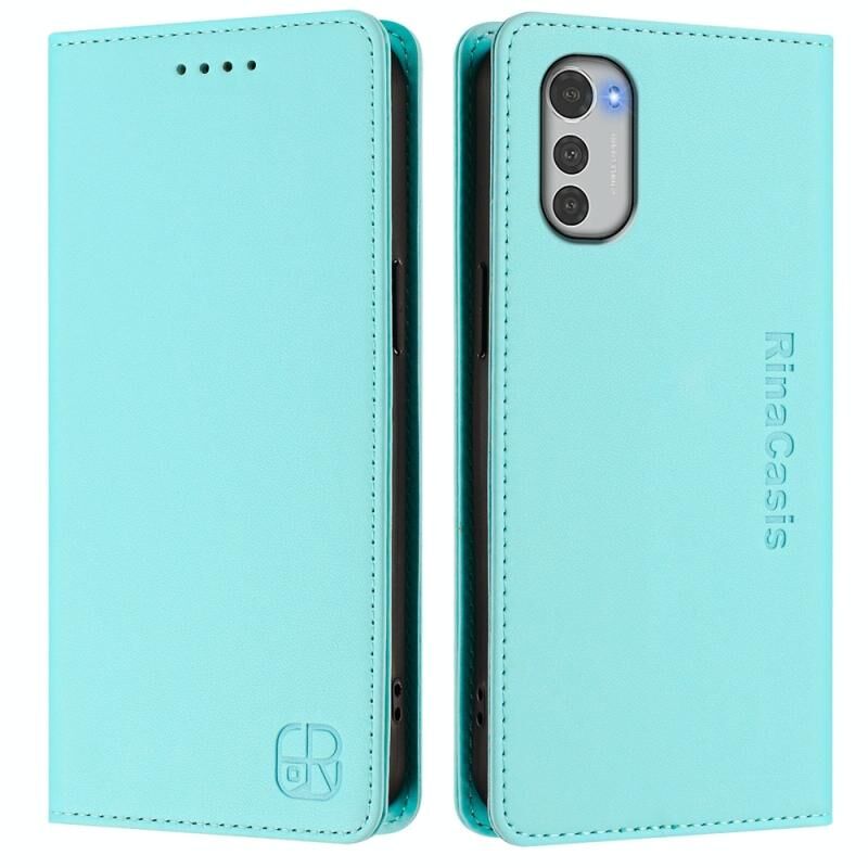 Θήκη τηλεφώνου δερμάτινη με μαγνητική απορρόφηση και διπλή πτυχή για Motorola Moto E32 Global RC01 (Μέντας Πράσινο)