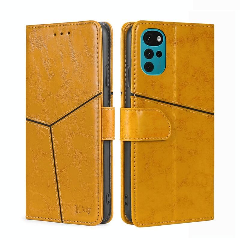 Για Motorola Moto E32 India/E22s 4G Παγκόσμια γεωμετρική ραφή οριζόντια Flip δερμάτινη θήκη τηλεφώνου (Κίτρινο)