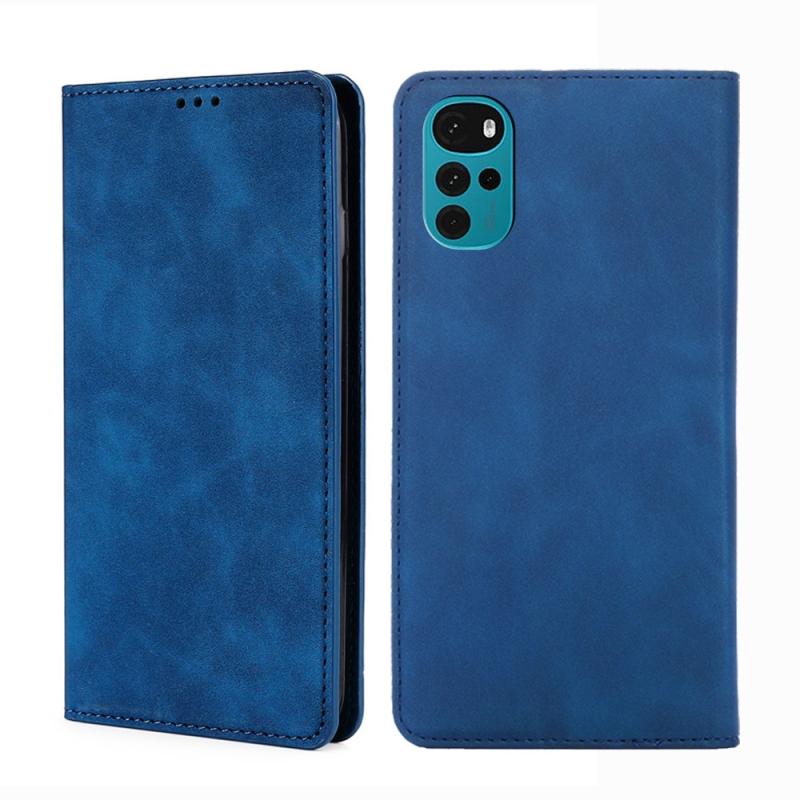Θήκη τηλεφώνου δερμάτινη, οριζόντια, μαγνητική, τύπου flip για Motorola Moto E32 India/E22s 4G Global με αίσθηση δέρματος (Μπλε)