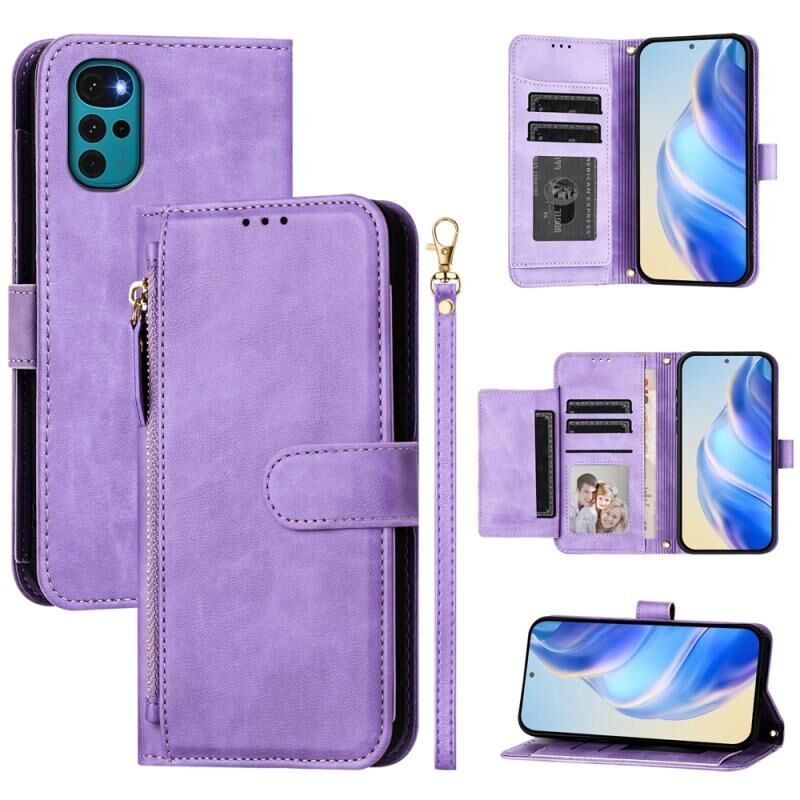 Για Motorola Moto E32 India / E32s / G22 Θήκη Τηλεφώνου Δερμάτινη με Φερμουάρ και Πολλαπλές Θήκες Καρτών (Μαύρο)