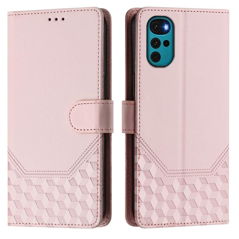 Για Motorola Moto E32 India / G22 4G Honeycomb ανάγλυφη RFID δερμάτινη θήκη τηλεφώνου (ροζ)
