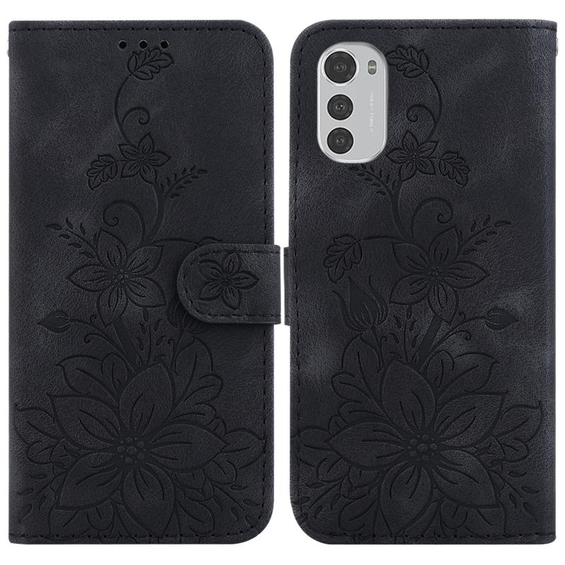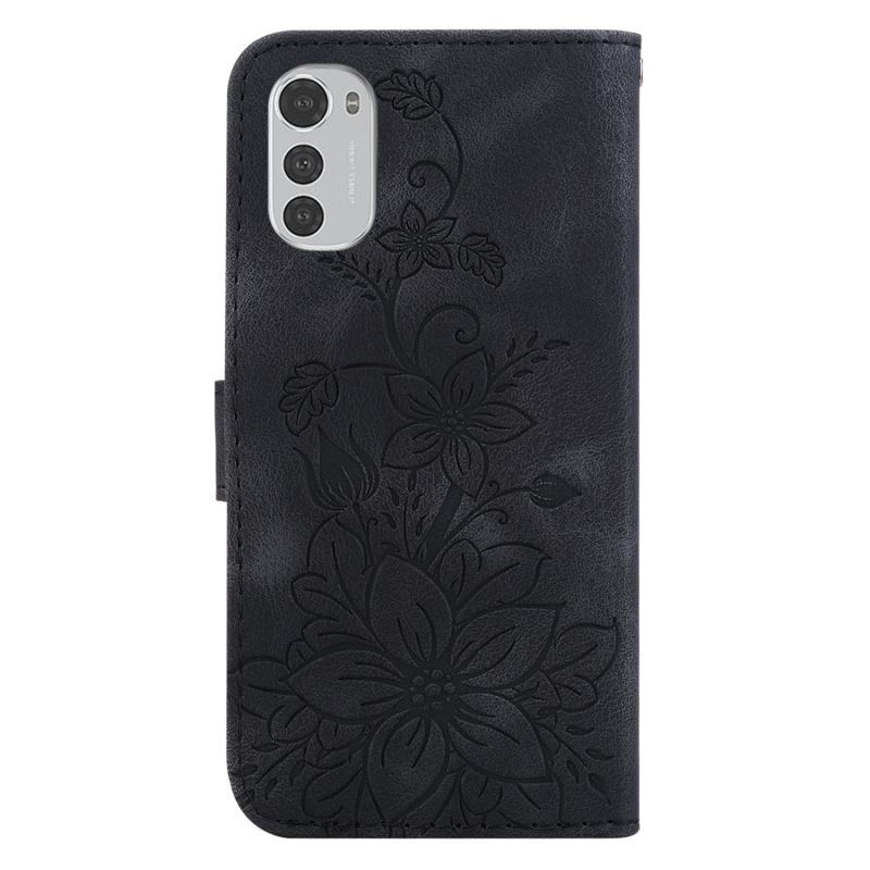 Θήκη κινητού τηλεφώνου από δέρμα με ανάγλυφο σχέδιο Lily για Motorola Moto E32 (Πράσινο)