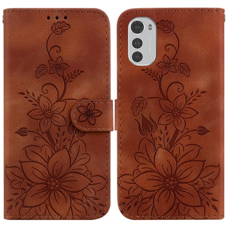 Θήκη κινητού τηλεφώνου από δέρμα με ανάγλυφο σχέδιο Lily για Motorola Moto E32 (Πράσινο)
