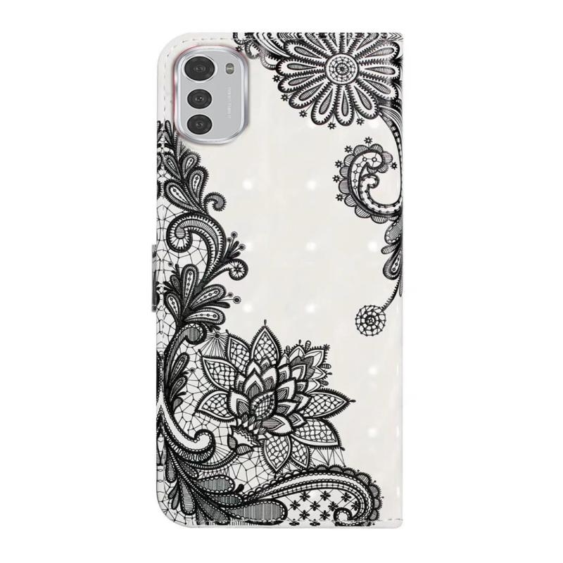 For Motorola Moto E32 Oil Embossed 3D Drawing Leather Phone Case(Lace Flower)