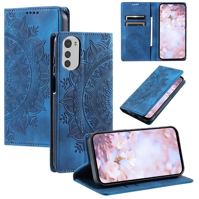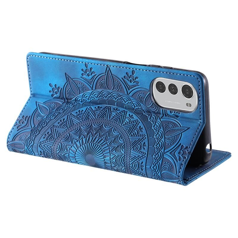 Για Motorola Moto E32 Totem ανάγλυφη μαγνητική δερμάτινη θήκη τηλεφώνου (μπλε)