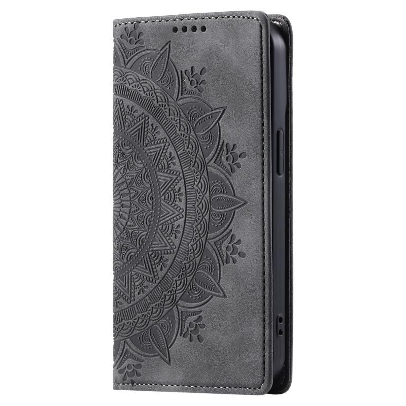 Για Motorola Moto E32 Totem ανάγλυφη μαγνητική δερμάτινη θήκη τηλεφώνου (Γκρι)