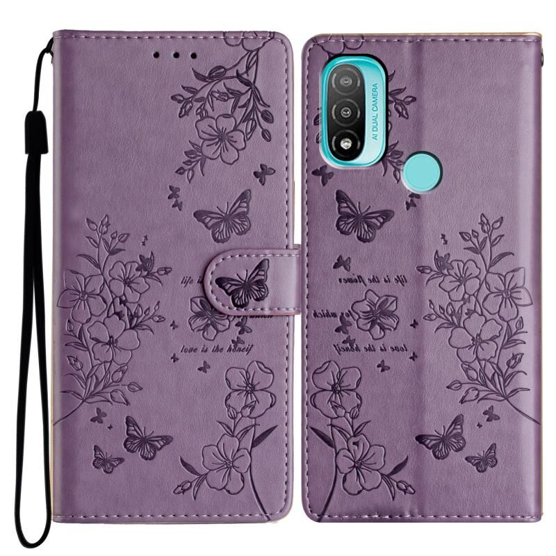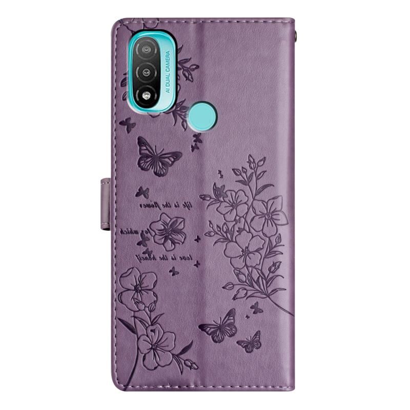 Θήκη τηλεφώνου δερμάτινη για Motorola Moto E40 με σχέδια πεταλούδες και λουλούδια (Χρυσό)