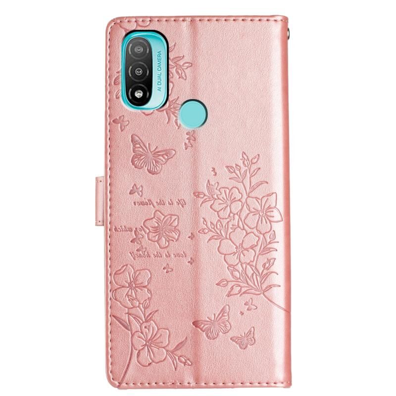 Θήκη τηλεφώνου δερμάτινη για Motorola Moto E40 με σχέδια πεταλούδες και λουλούδια (Χρυσό)