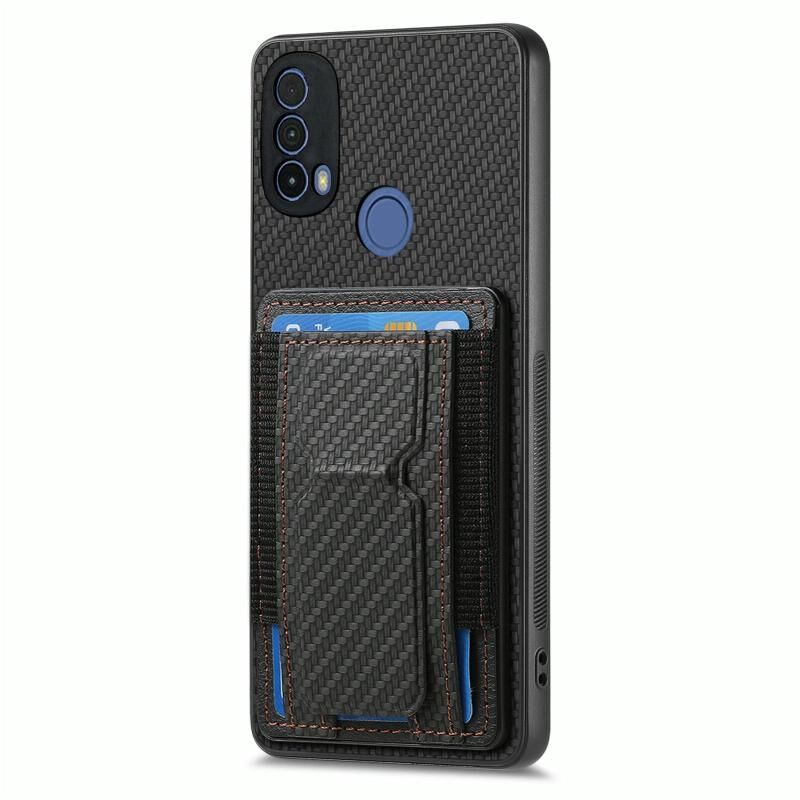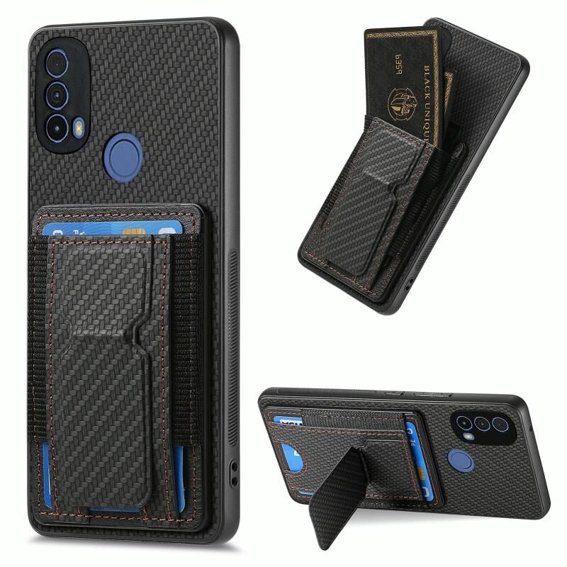 Για Motorola Moto E40 Θήκη Πορτοφόλι με Κάρτες & Στήριξη Carbon Fiber (Μαύρο)