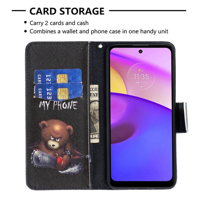 Θήκη τηλεφώνου δερμάτινη με έγχρωμο σχέδιο (αρκούδα) για Motorola Moto E40 / E30. (Κόκκινο)
