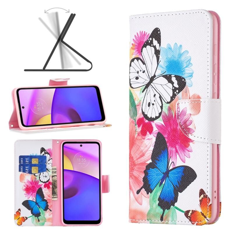 Θήκη τηλεφώνου δερμάτινη με έγχρωμο σχέδιο (πεταλούδες) για Motorola Moto E40 / E30.