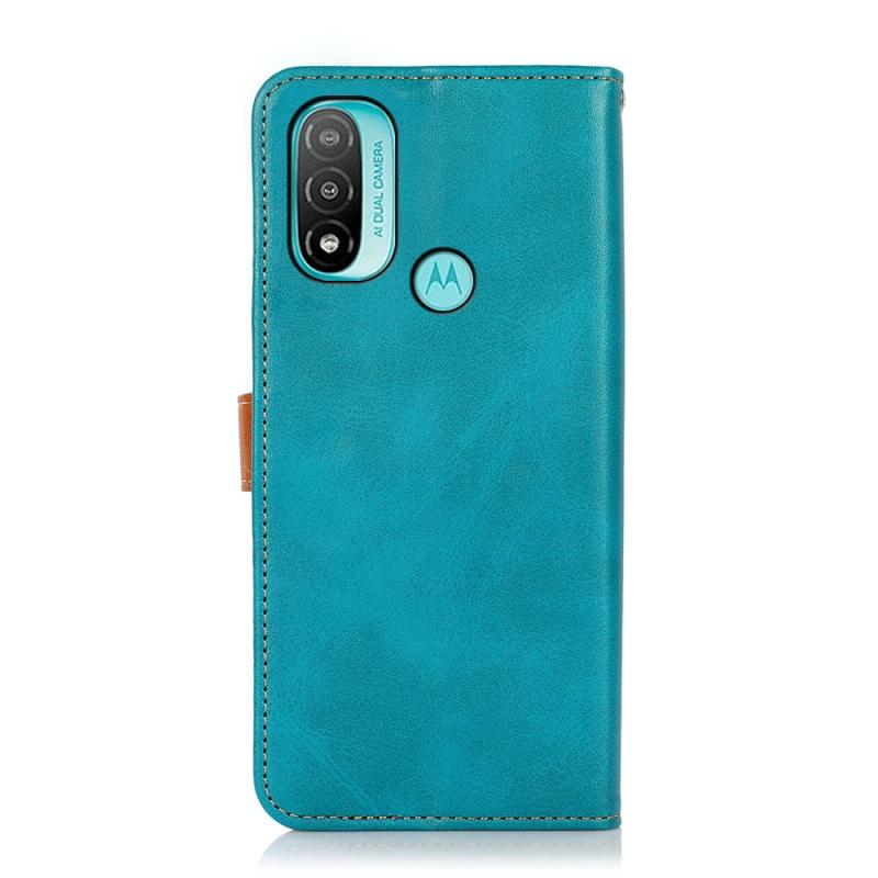 Θήκη τηλεφώνου από δέρμα με υφή δερμάτινου μοσχαριού διπλής απόχρωσης KHAZNEH για Motorola Moto E40 / E30 / E20 (Μπλε)