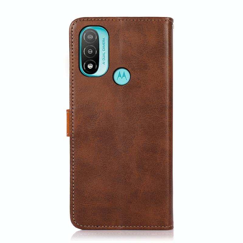 Θήκη τηλεφώνου από δέρμα με υφή δερμάτινου μοσχαριού διπλής απόχρωσης KHAZNEH για Motorola Moto E40 / E30 / E20 (Καφέ)