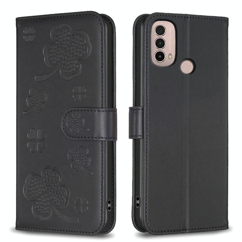 For Motorola Moto E40 / E30 Four-leaf Embossed Leather Phone Case(Black)