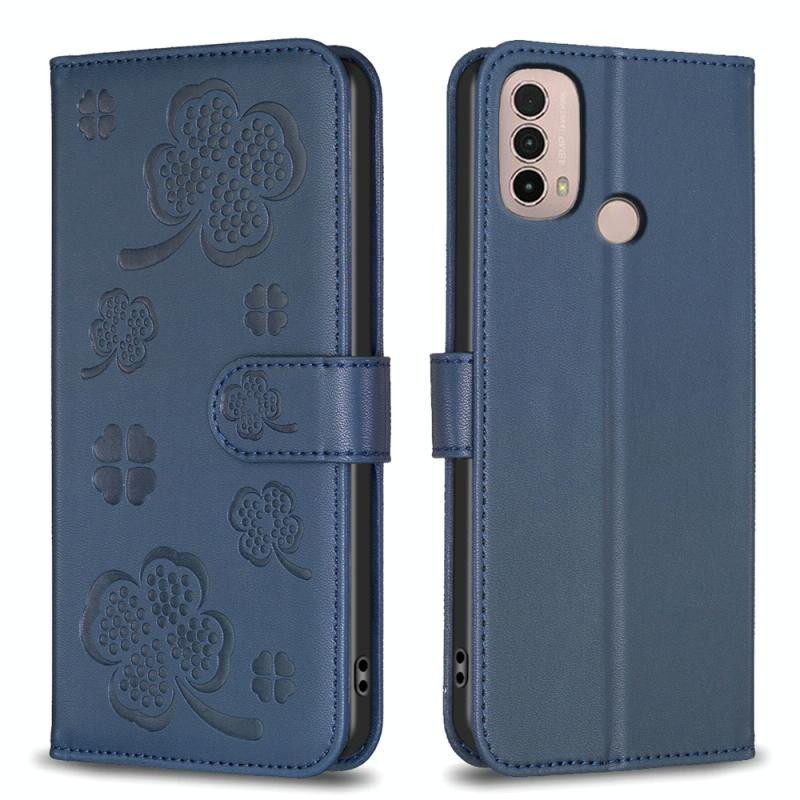 For Motorola Moto E40 / E30 Four-leaf Embossed Leather Phone Case(Blue)