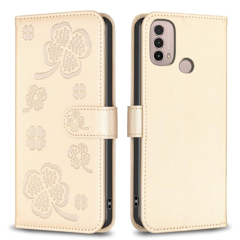 For Motorola Moto E40 / E30 Four-leaf Embossed Leather Phone Case(Gold)