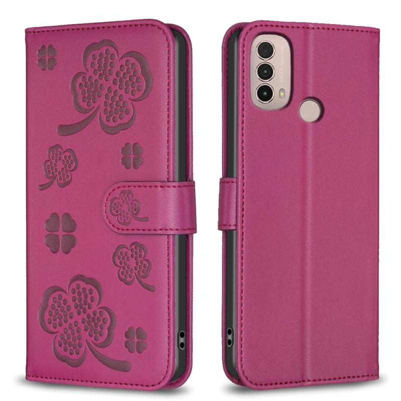 For Motorola Moto E40 / E30 Four-leaf Embossed Leather Phone Case(Rose Red)